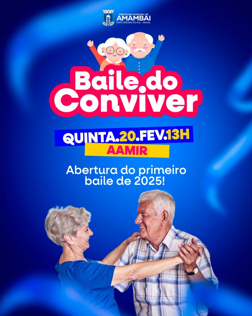 A Prefeitura de Amambai, por meio da Secretaria Municipal de Assistência Social, inicia nesta quinta-feira (20) o tradicional Baile do Conviver, um evento voltado para a socialização e o bem-estar dos idosos do município. A abertura oficial está marcada para as 13h, no salão da AAMIR, onde os participantes poderão aproveitar um ambiente festivo e acolhedor.