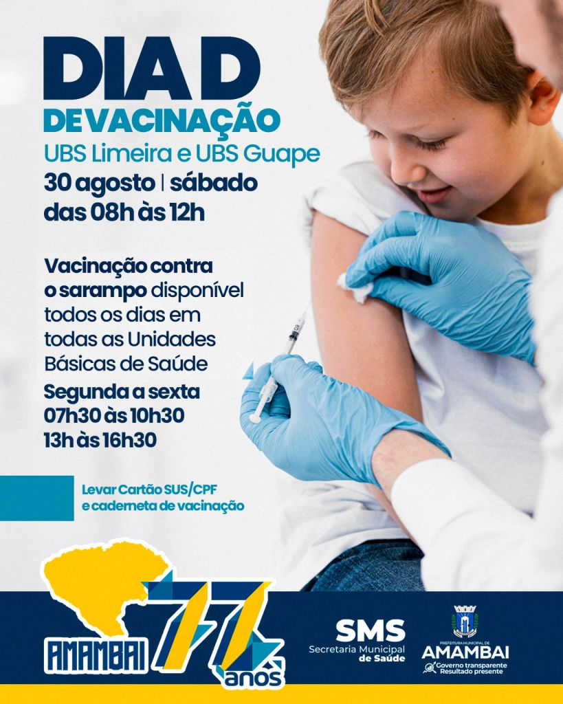 A Prefeitura de Amambai, por meio da Secretaria Municipal de Saúde e em parceria com o Governo do Estado, realiza a campanha “Vacina Mais Sarampo”. A ação faz parte da mobilização estadual para reforçar a imunização contra a doença, considerada altamente contagiosa e potencialmente grave.