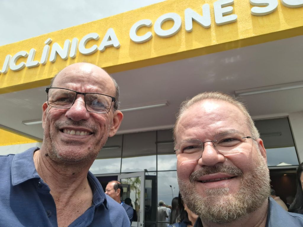 O prefeito de Amambai, Sérgio Barbosa, e o secretário municipal de Saúde participaram nesta segunda-feira (27) da solenidade de inauguração da Policlínica Cone Sul, em Dourados
