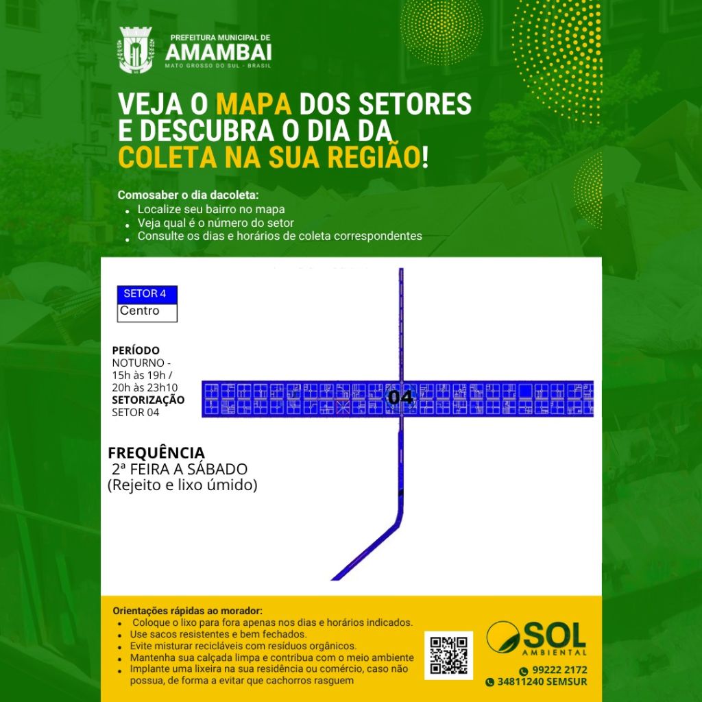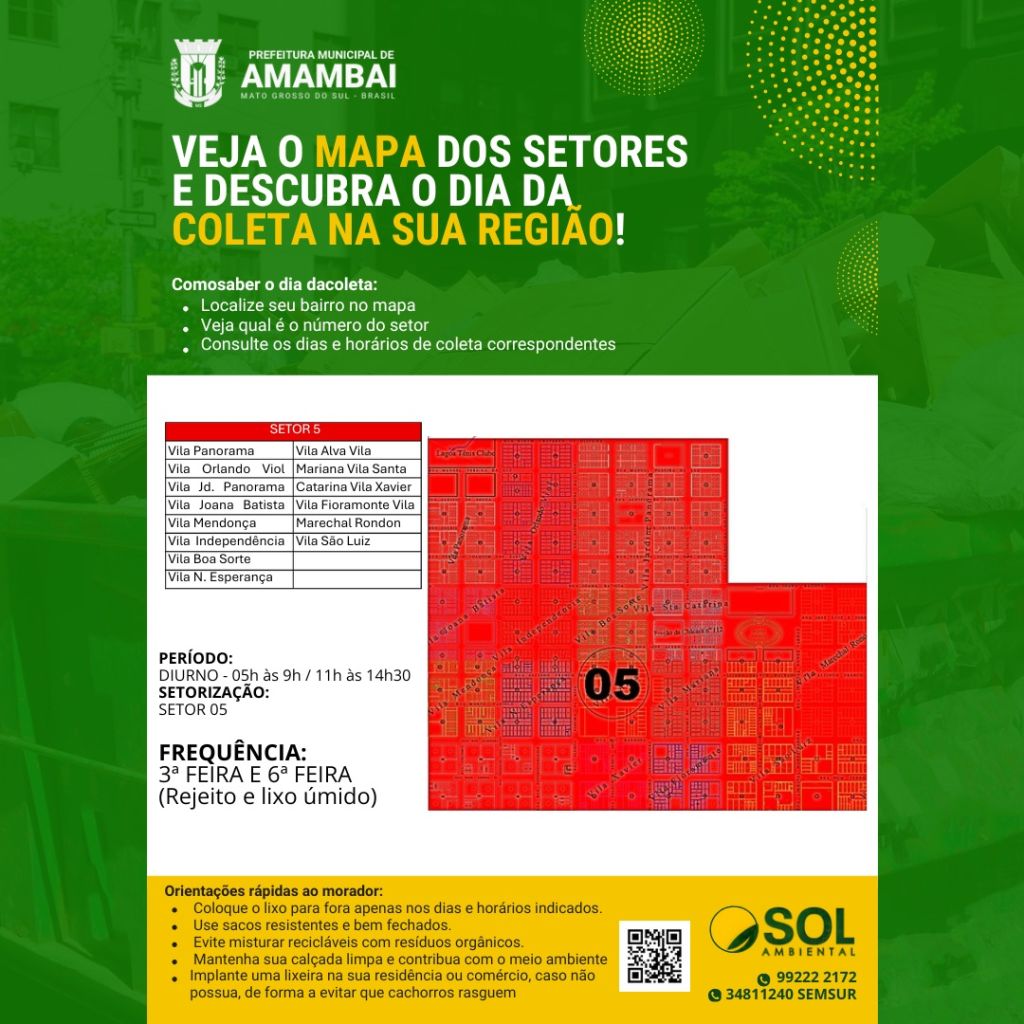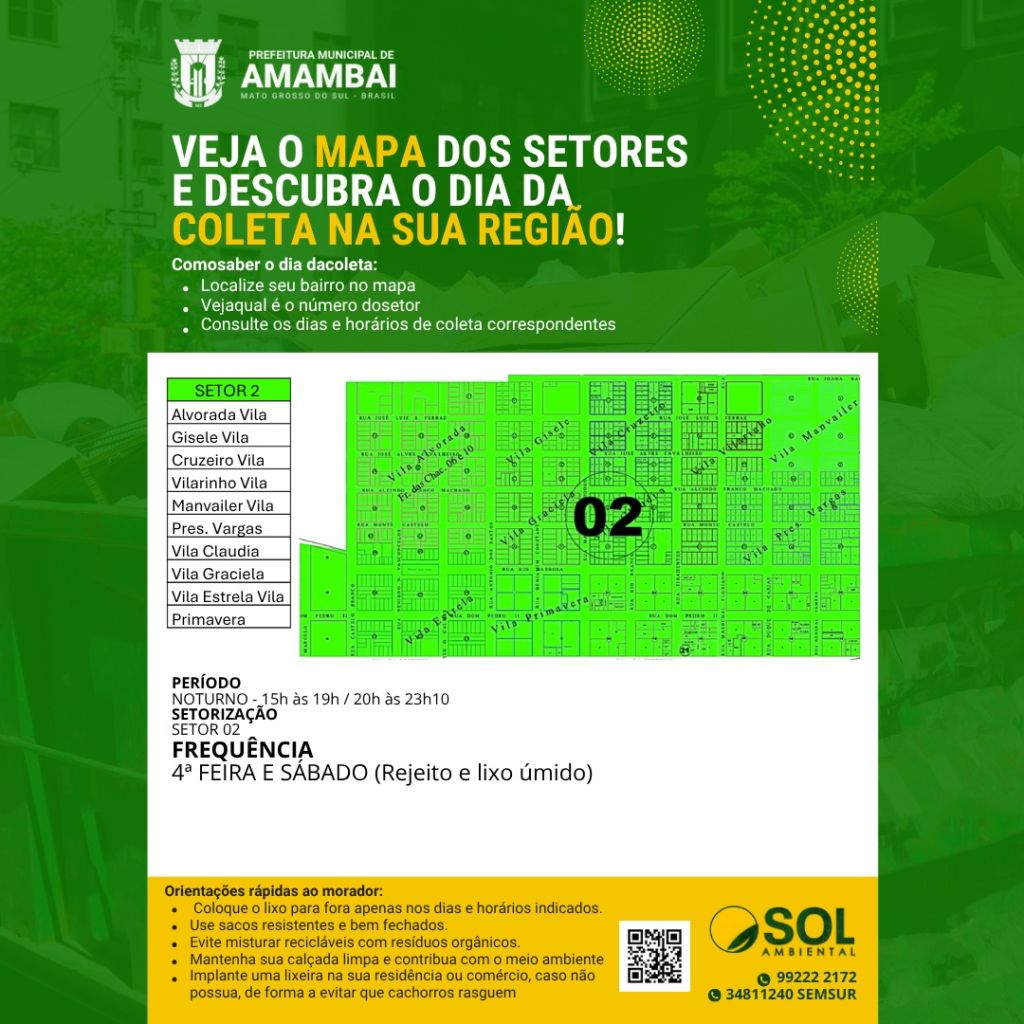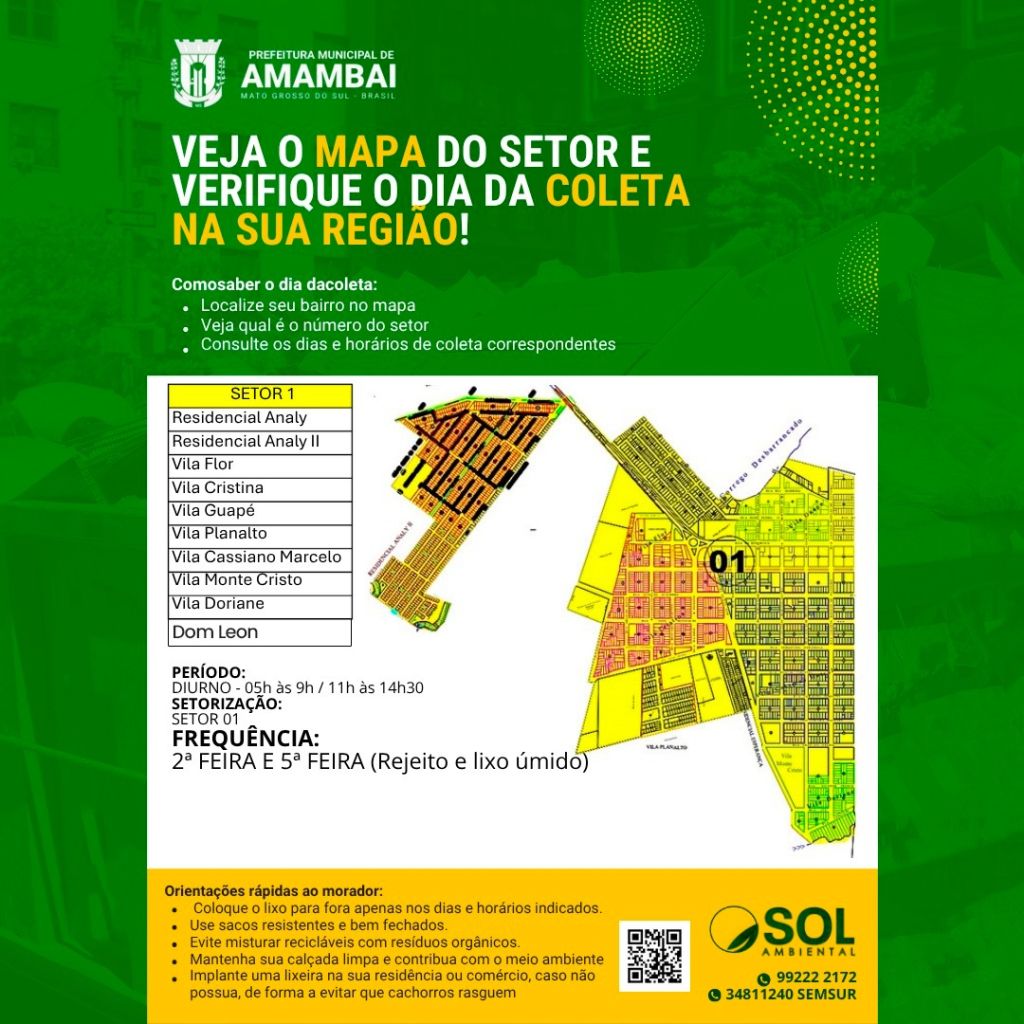 A Prefeitura de Amambai informa que a partir do dia 1º de novembro, a empresa Sol Ambiental assume oficialmente a coleta de resíduos sólidos urbanos — referente ao lixo doméstico, úmido e rejeitos.