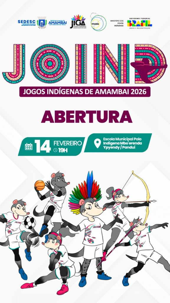 A comunidade indígena e toda a população de Amambai estão convidadas para a abertura oficial do XIX JOIND – Jogos Indígenas de Amambai, que acontece neste sábado, dia 14 de fevereiro, às 19h, na Escola Municipal Polo Indígena Mbo’erenda Ypyendy / Pandui.