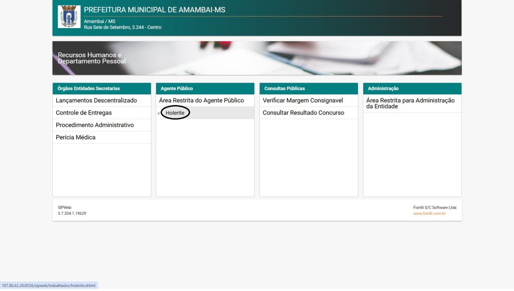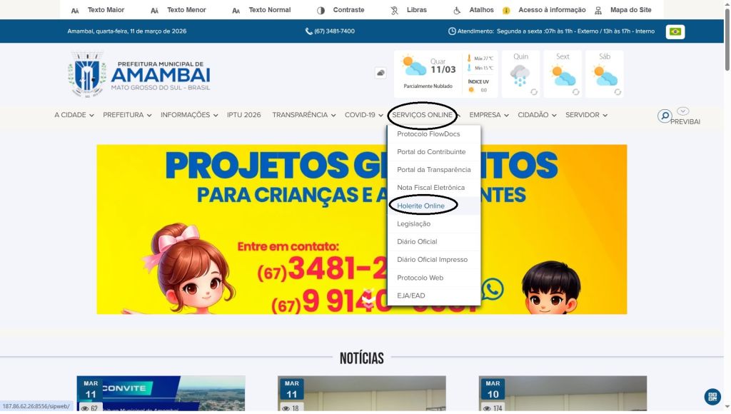 Para acessar, basta entrar no site da Prefeitura de Amambai e seguir o caminho: