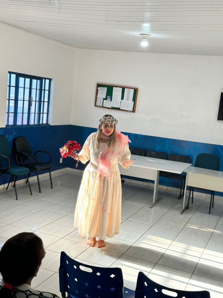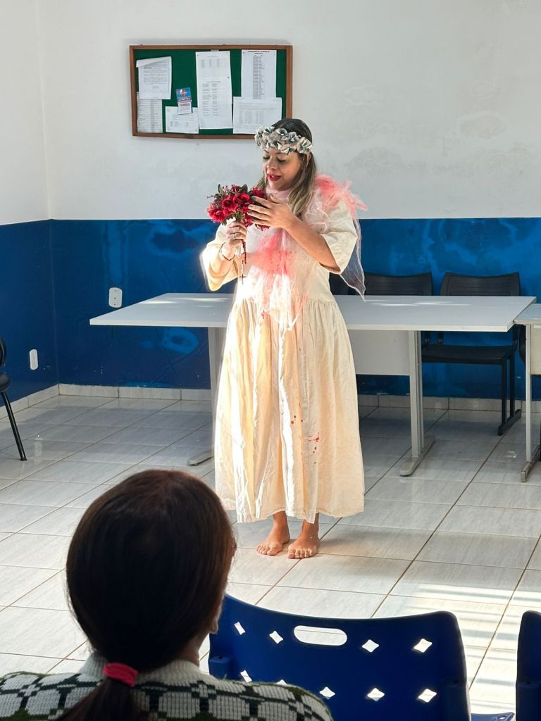 De forma sensível e impactante, a peça abordou a violência contra a mulher e o feminicídio. Após cada apresentação, foi realizada uma fala explicativa sobre a Lei Maria da Penha e os mecanismos de denúncia disponíveis em casos de violência.