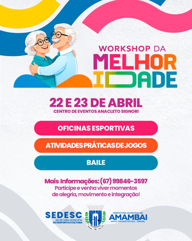 Amambai recebe, nos dias 22 e 23 de abril, o Workshop da Melhor Idade, um evento voltado à promoção da saúde, bem-estar e integração da população idosa. A iniciativa é uma realização do Governo do Estado, em parceria com a Prefeitura de Amambai.